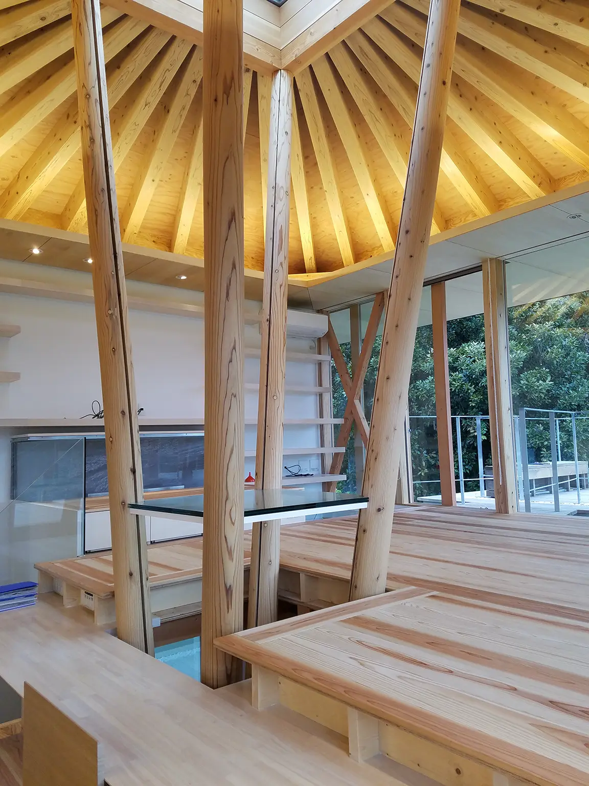 特に丸柱の墨付けと建て方は難易度が高く、職人同士で何度も確認を重ねながら組み上げました。